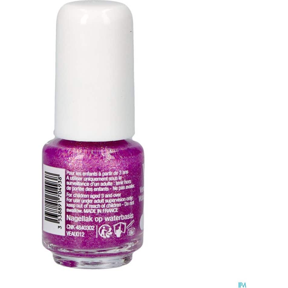 Vitry Esmalte de Uñas Al Agua Unicornio 4ml para niños es un esmalte seguro y divertido, indicado para niños a partir de 3 años y pensado para uñas frágiles. Su fórmula al agua incluye hasta un 97% de ingredientes naturales y ofrece un tono violeta inspirado en unicornios.