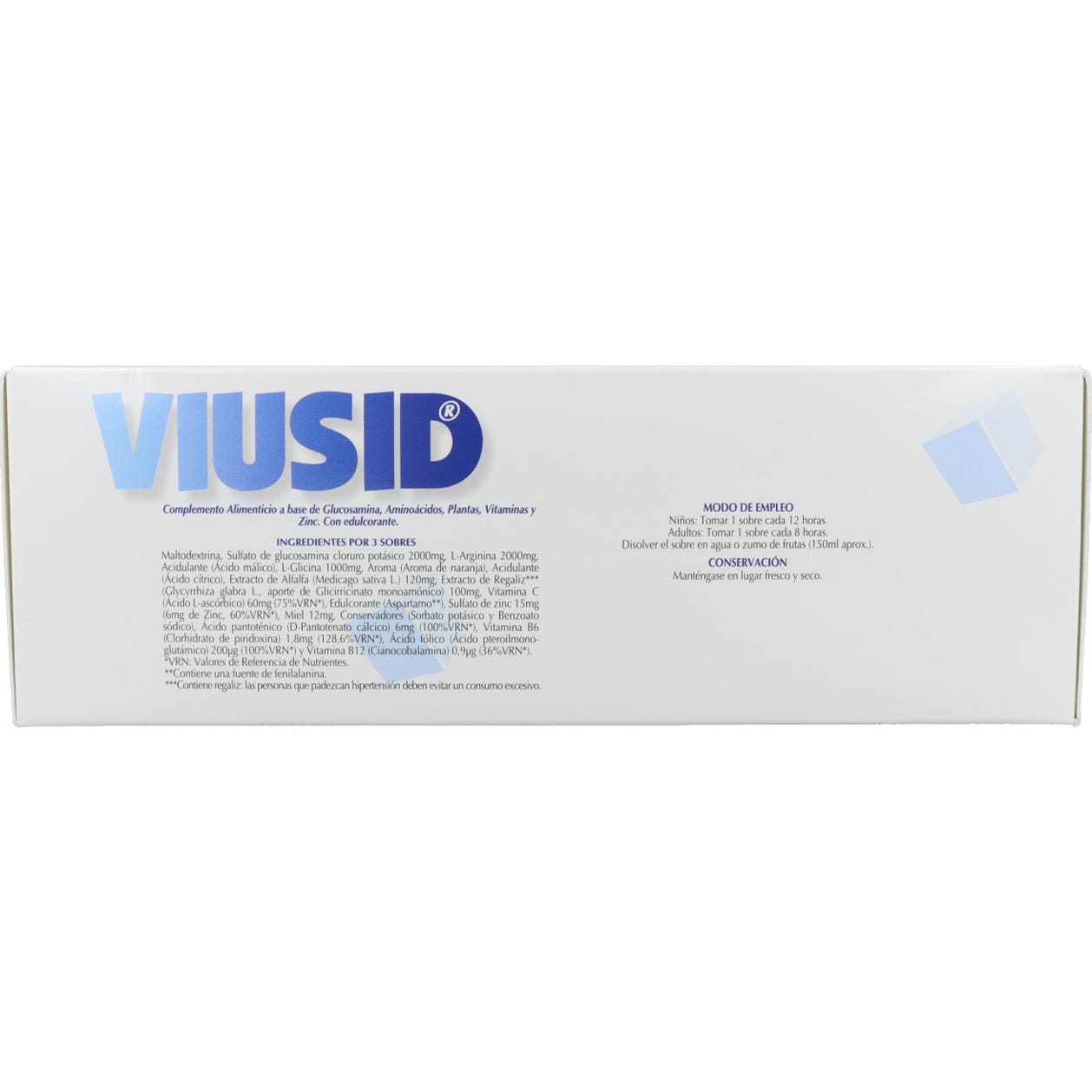 Viusid® es un complemento alimenticio diseñado para favorecer el buen estado de las funciones orgánicas de nuestro cuerpo y para reforzar nuestro sistema inmunitario. Gracias a su formulación multivitamínica, este producto te aportará una función antiviral, antioxidante y anti-radicales libres que te reconfortará y saneará incluso en las condiciones más adversas.