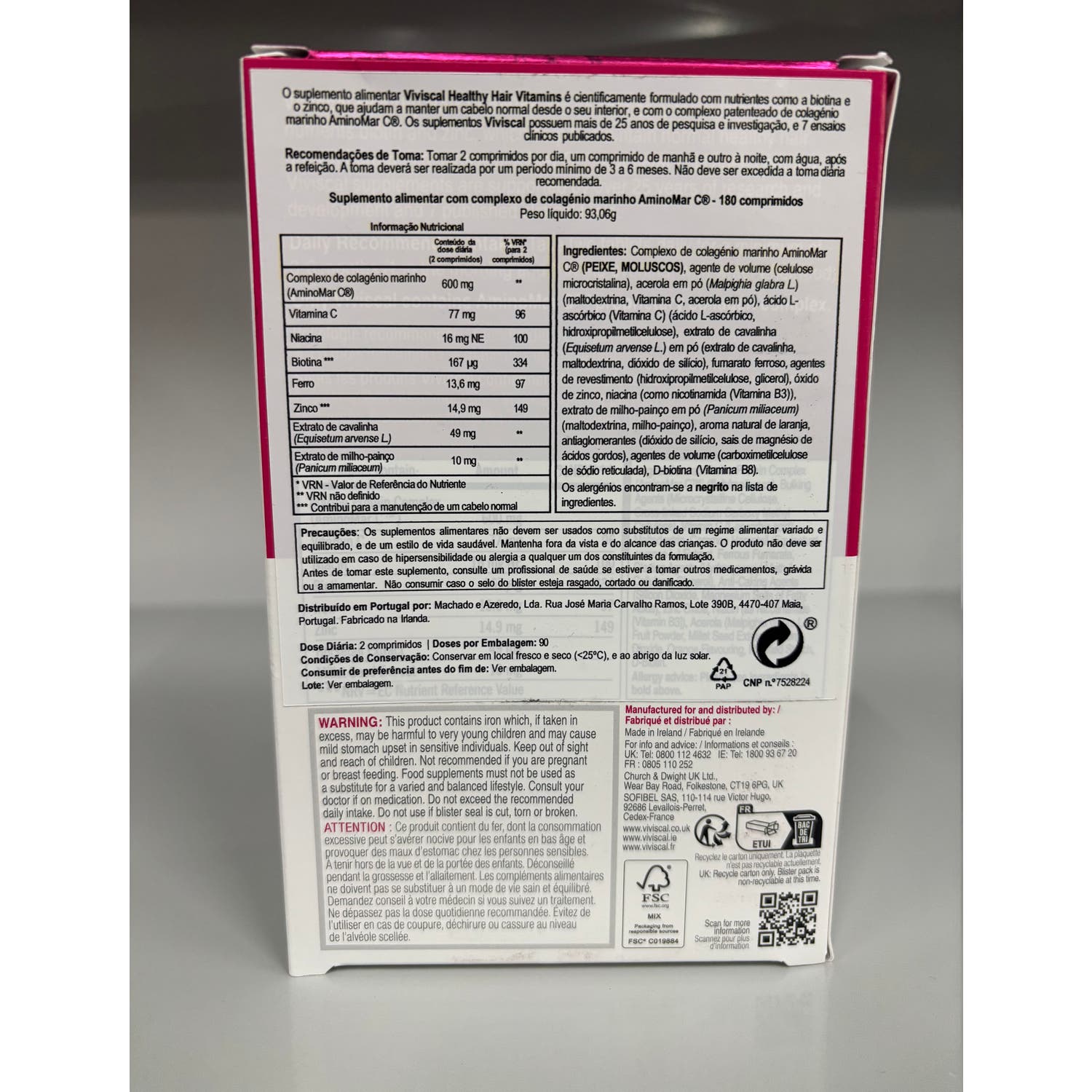 Viviscal Healthy Hair Fortalecedor del Cabello 180 comp es un suplemento alimentario diseñado para nutrir y fortalecer el cabello desde la raíz. Este producto se basa en más de 25 años de investigación y está respaldado por siete ensayos clínicos. Su exclusivo complejo patentado, AminoMar C™, ofrece proteínas de origen marino que favorecen el crecimiento normal del cabello.