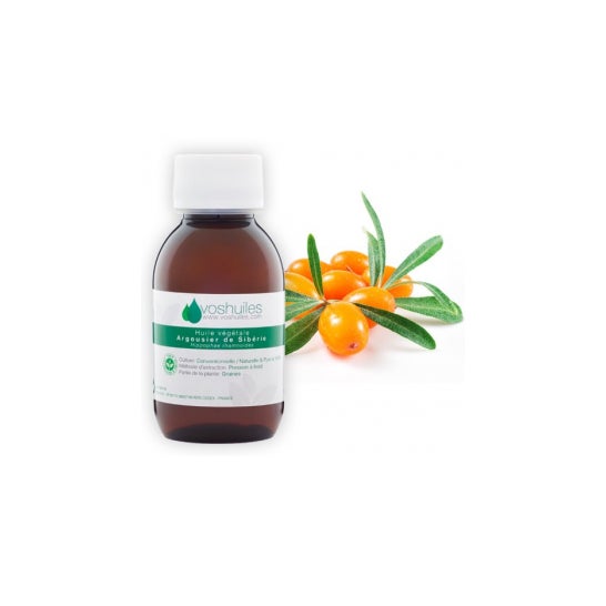 El aceite de espino amarillo de Voshuiles es un aceite vegetal conocido a veces por su nombre en inglés "sea buckthorn". Extraído de bayas de espino amarillo prensadas en frío, se utiliza principalmente como ingrediente de mezcla para aplicaciones cutáneas.
