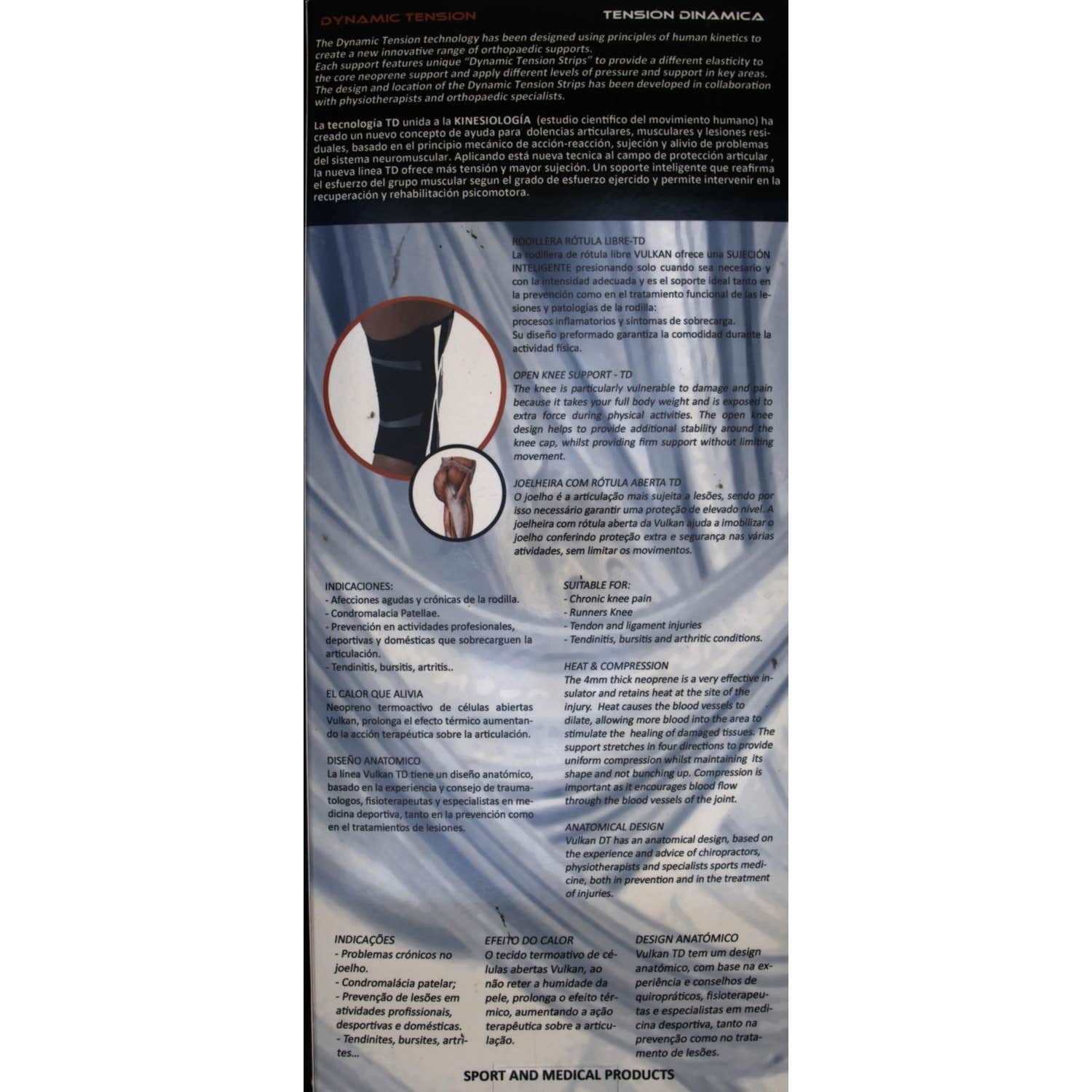 La rodillera rotular libre TD (tensión dinámica) de Vulkan sujeta de forma óptima la rótula con la intensidad adecuada y presionando solo cuando es necesario. Recomendada en las siguientes lesiones: