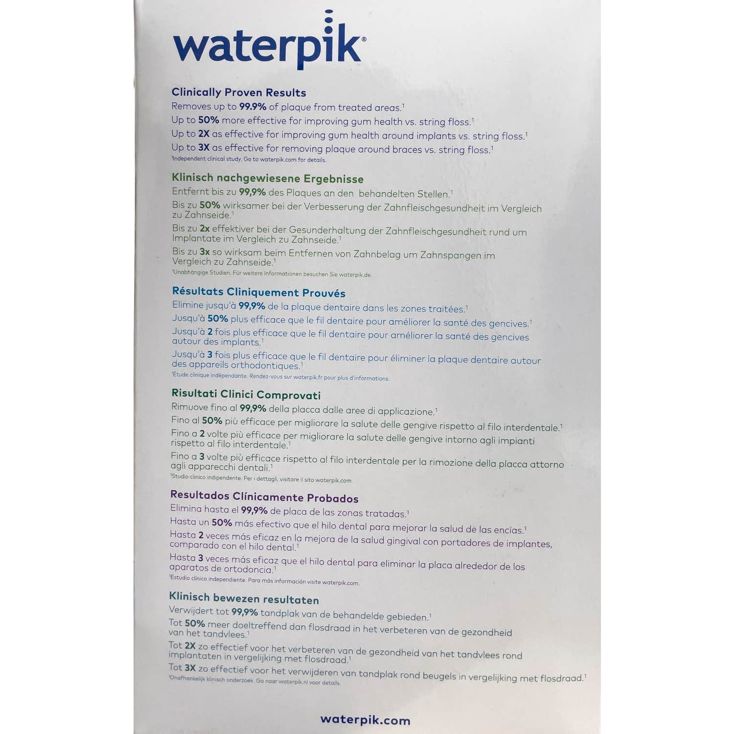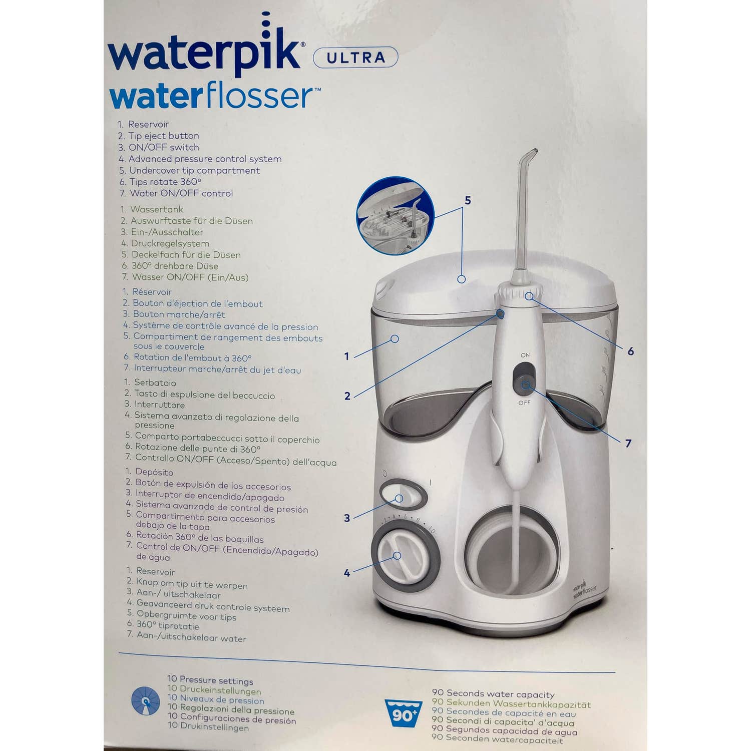 Tiene 10 posiciones, con distintas presiones para proporcionar una limpieza bucal más profunda. Permite eliminar el 99,9% de la placa bacteriana en zonas donde otros aparatos no pueden llegar. Además, aporta sensación de frescor e higiene, ayudando a reducir al mismo tiempo el sangrado de las encías.