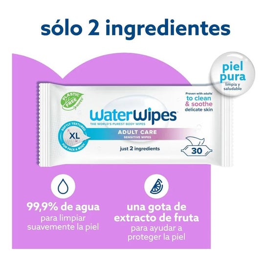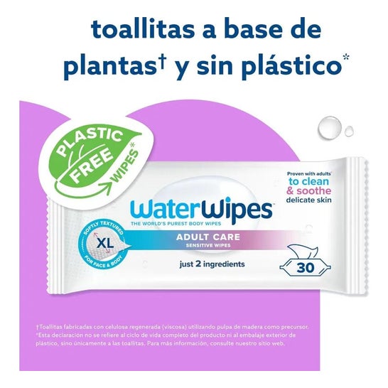 WaterWipes Toallitas Delicadas Cuidado del Adulto 3x30uds son toallitas húmedas diseñadas para una higiene rápida en cualquier lugar.