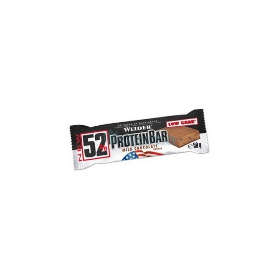 Barrita hiperproteica de la marca Weider con sabor de chocolate con un contenido de proteina del 52%, es baja en azúcares netos y tiene un delicioso sabor. Es ideal para deportistas que quieren ganar masa muscular durante la fase de construcción muscular y mantener el músculo definido, gracias a su alto contenido en proteína. Tomar después del entrenamiento.