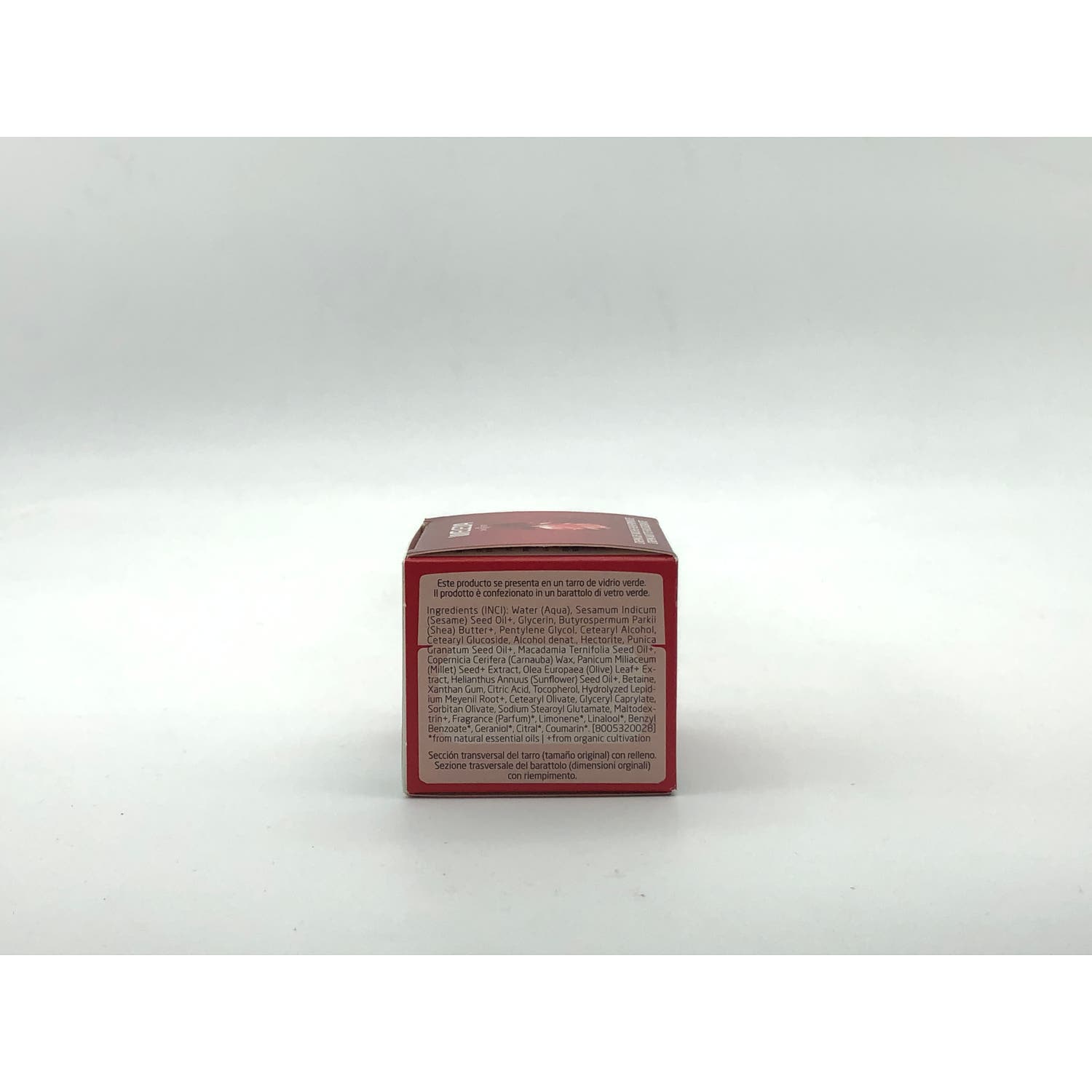 Formulado con nutrientes procedentes del agente de germen de trigo, que contribuye a la regeneración celular de la piel de forma natural. Además de aceites biológicos de granada y argán, que estimulan la renovación celular, ayudan a mejorar la elasticidad de la piel y combaten los signos prematuros de la edad.