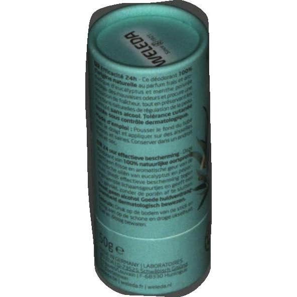 Weleda Desodorante Stick 24h Eucalipto Menta Piperita 50g es un desodorante sólido en stick que ayuda a proporcionar una sensación de frescor, evitando los malos olores y protegiendo las axilas.