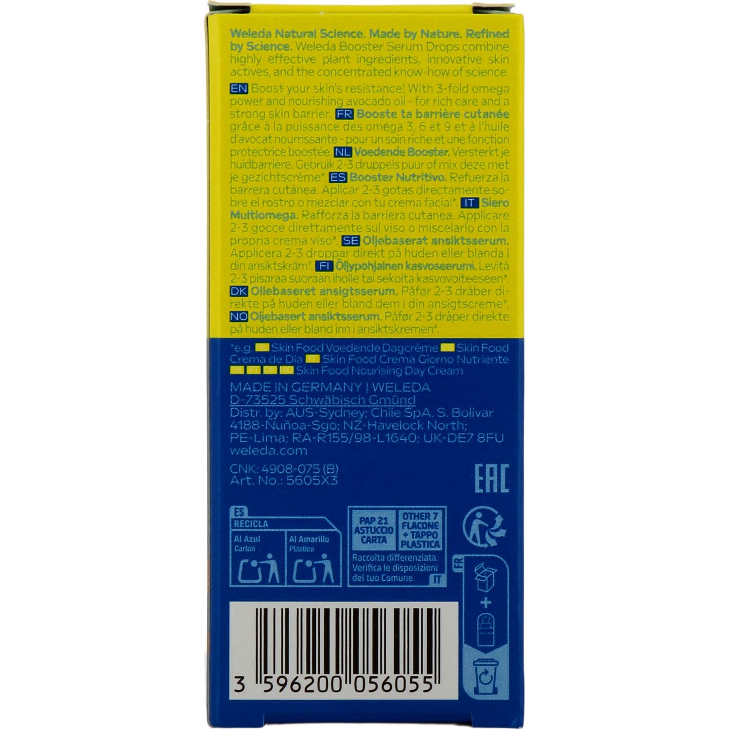 Weleda Extra Rich Omega Serum Drops 30 ml es un sérum enriquecido diseñado para proporcionar una intensa nutrición a la piel. Este producto se caracteriza por su contenido de ácidos grasos esenciales Omega 3, 6 y 9, junto con aceite de aguacate, que ayudan a mantener la hidratación y fortalecer la barrera cutánea.