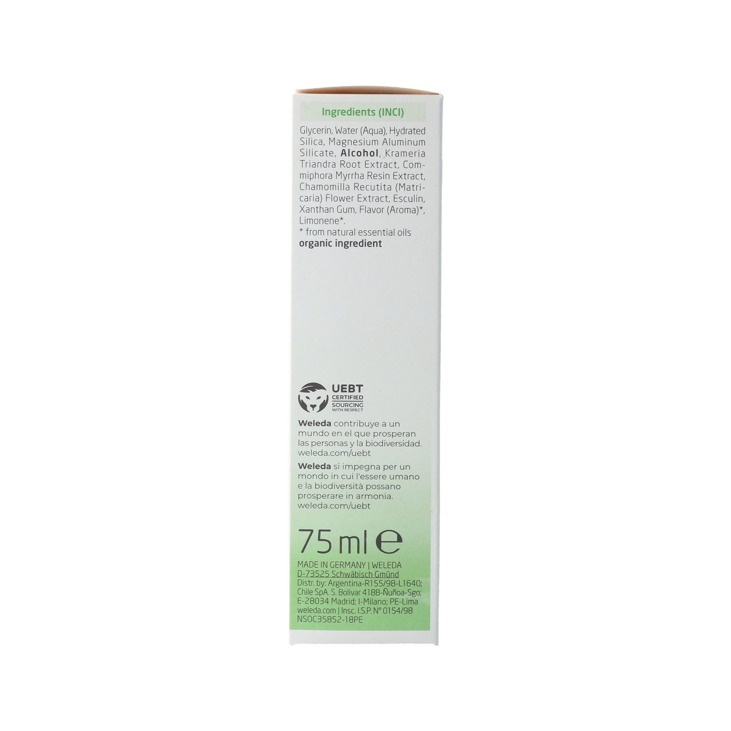 Weleda gel dentífrico vegetal es el dentífrico indicado que te ayuda a cuidar las encías delicadas, a la vez que previenes la caries y reduces la placa bacteriana de tu boca. Sus principios activos a base de extractos de manzanilla, mirra y ratania ayudan a reforzar las encías y conservar el equilibrio natural de la flora bucal.