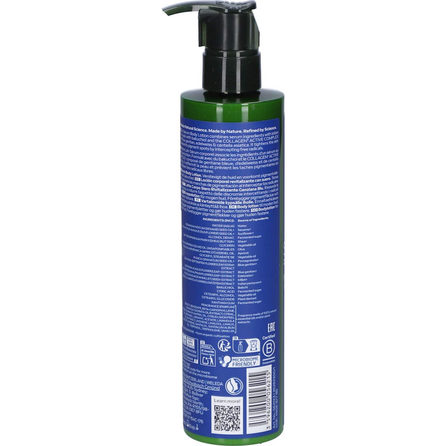 Weleda Leche Sérum Revitalizante Genciana Azul 250 ml es un tratamiento anti-edad diseñado para el cuerpo. Su fórmula combina las propiedades de un sérum con la hidratación de una leche corporal, ofreciendo una experiencia de cuidado integral.