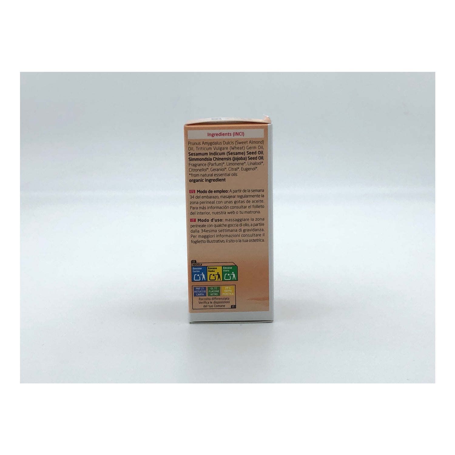Este aceite ha sido desarrollado junto a matronas y farmacéuticos, y testado dermatológicamente, incluso en pieles sensibles. Sin conservantes, colorantes, perfumes sintéticos, ni sustancias de origen petroquímico.