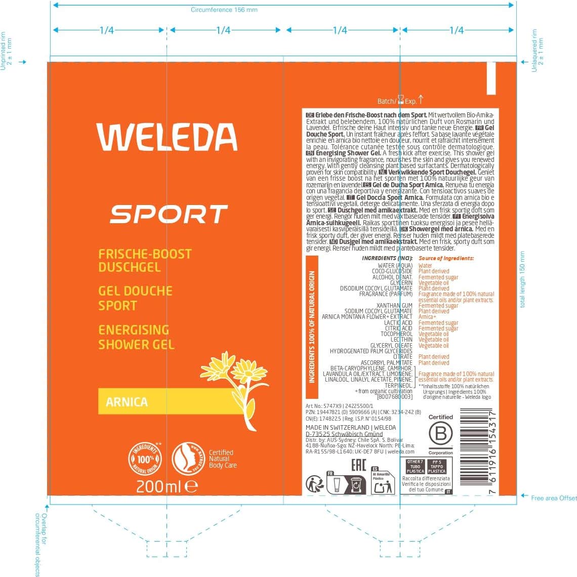 Weleda Sport Gel de Ducha de Árnica 200ml que limpia suavemente la piel preservando su hidratación natural gracias a sus tensioactivos de origen 100% degradables.