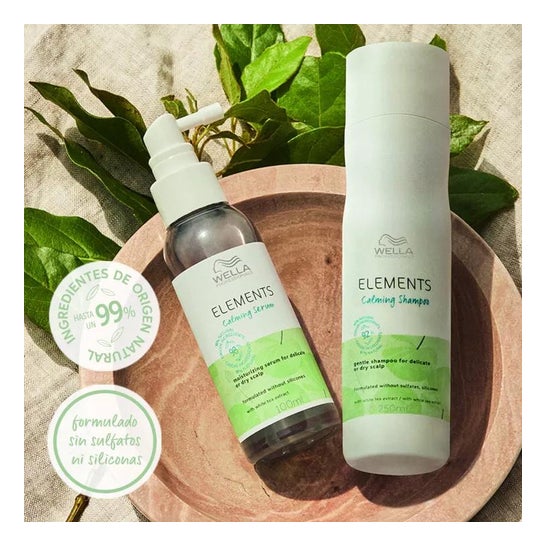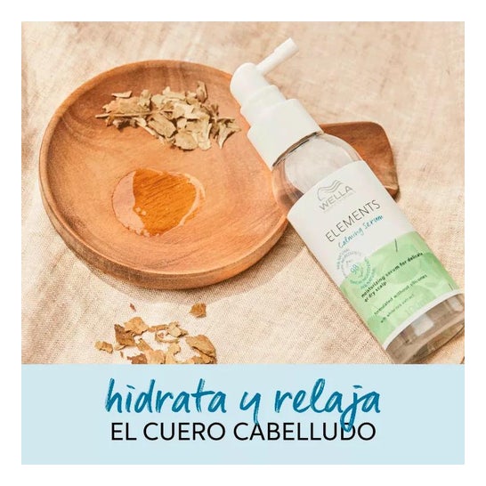Wella Elements Calming Serum 100ml es un producto de origen natural que cuida y restaura la hidratación del cuero cabelludo sin afectar el volumen del cabello.