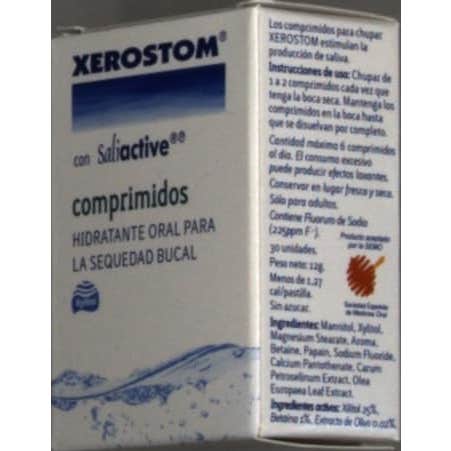 Xerostom 30uds son unos comprimidos que humedecen y refrescan la boca, estimulando de forma lenta la función salival. Alto contenido en Xilitol, pH neutro y sin azúcar.