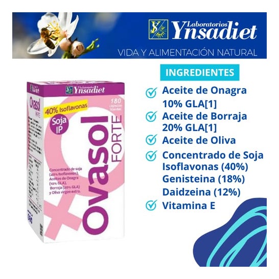Las perlas Ynsadiet Ovasol Forte están elaboradas a base de isoflavonas de soja, un producto natural que mejora la calidad de vida de las mujeres adultas. De esta manera, las mujeres podrán ver menguadas esas molestias causadas por la menopausia.