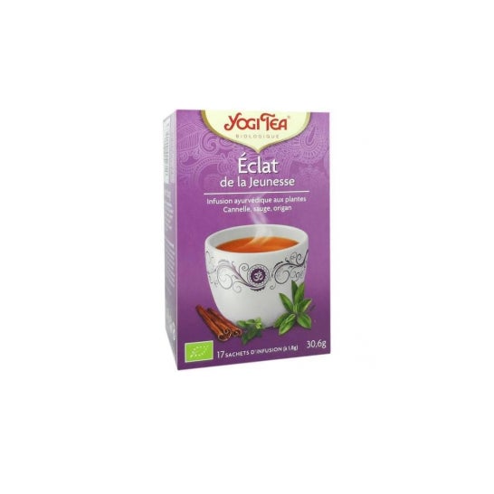 Yogi Té clat De Jeunesse 17 Bolsitas 30,6G es una infusión diseñada para potenciar el bienestar y la vitalidad. Su cuidadosa selección de plantas y especias ayurvédicas favorece la sensación de energía y contribuye al equilibrio natural del organismo. Es ideal para personas activas que desean mantener su luminosidad en el día a día.