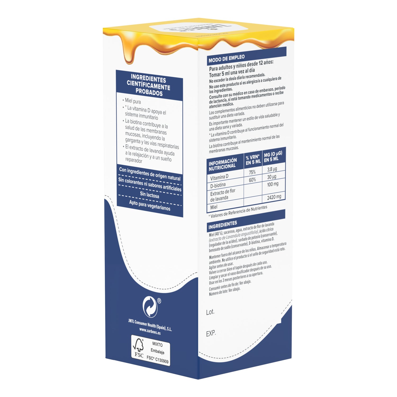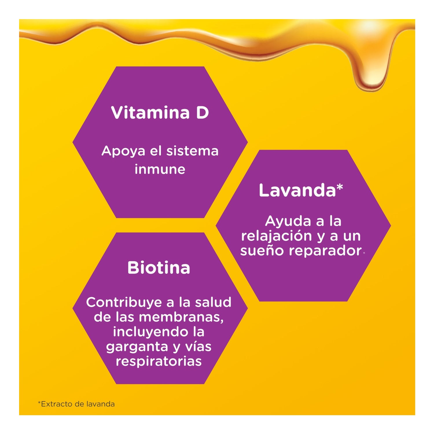 Contiene extracto de lavanda, que ayuda a facilitar el descanso y biotina que contribuye a la salud de las vías respiratorias.