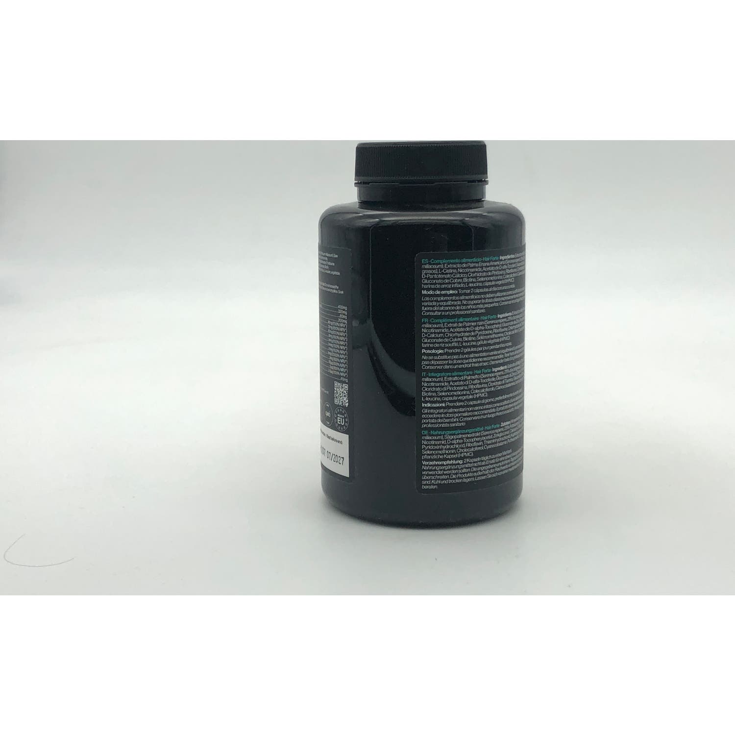 Ingredientes por dosis (2 cápsulas): Extracto de Mijo 10:1 (Panicum miliaceum) 400 mg, Extracto de Saw palmetto (Serenoa repens, 25% ácidos grasos) 320 mg, L-Cistina 200 mg, Vitamina B3 (como Nicotinamida) 16 mg (100% VRN), Vitamina E Natural (como D-Alfa Tocoferil) 12 mg (100% VRN*), Zinc (como Gluconato de Zinc) 10 mg (100% VRN*), Vitamina B5 (como D-Pantotenato Cálcico) 6 mg (100% VRN*), Vitamina B6 (como Clorhidrato de Piridoxina) 1,4 mg (100% VRN*), Vitamina B2 (como Riboflavina) 1,4 mg (100% VRN*), Vitamina B1 (como Clorhidrato de Tiamina) 1,1 mg (100% VRN*), Cobre (como Gluconato de Cobre) 1 mg (100% VRN*), Vitamina B7 (como Biotina) 1 mg (2000% VRN*), Selenio (como Selenometionina) 55 µg (100% VRN*), Vitamina D (como Colecalciferol) 5 µg (100% VRN*), Vitamina B12 (como Cianocobalamina) 2,5 µg (100% VRN*), L-Leucina 40 mg. Otros ingredientes: harina de arroz, cápsula vegetal (HPMC). *VRN: Valores de Referencia de Nutrientes.