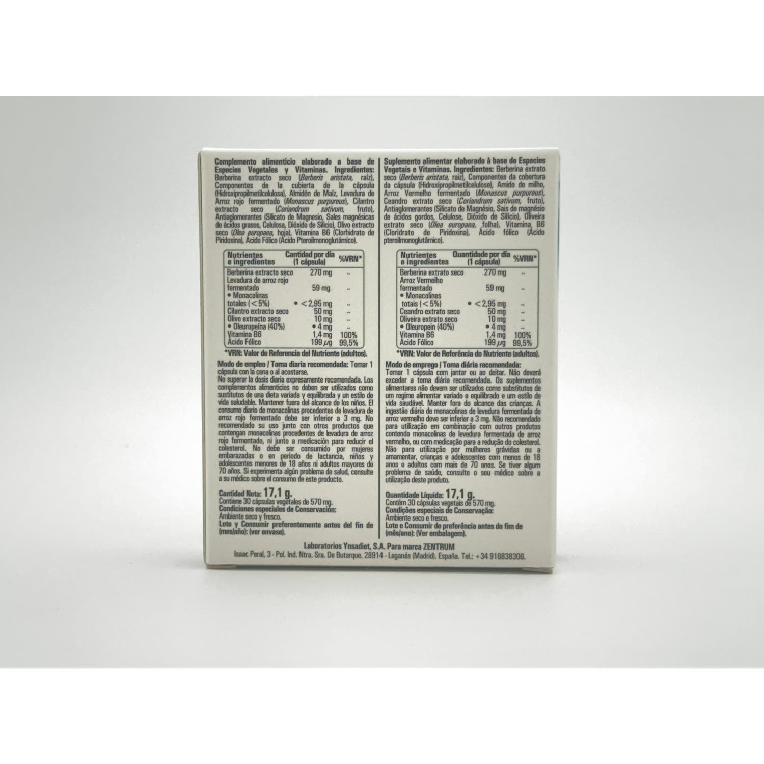 Cápsulas elaboradas a base de una combinación de levadura de arroz rojo y extracto seco de olivo que ayudan a regular los niveles de colesterol en la sangre.
