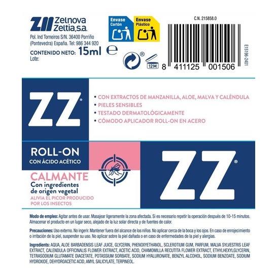 Para más información sobre Zz Roll-On Calmante 15 Ml u otros productos de la amplia gama disponible, no dude en consultar al equipo farmacéutico de su parafarmacia de confianza.