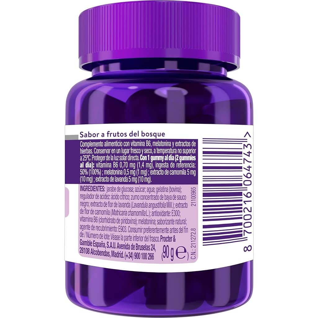Contiene extractos naturales y una dosis baja de melatonina, lo que lo hace seguro y efectivo. Además, posee un agradable sabor a frutos del bosque lo hace atractivo para los niños.