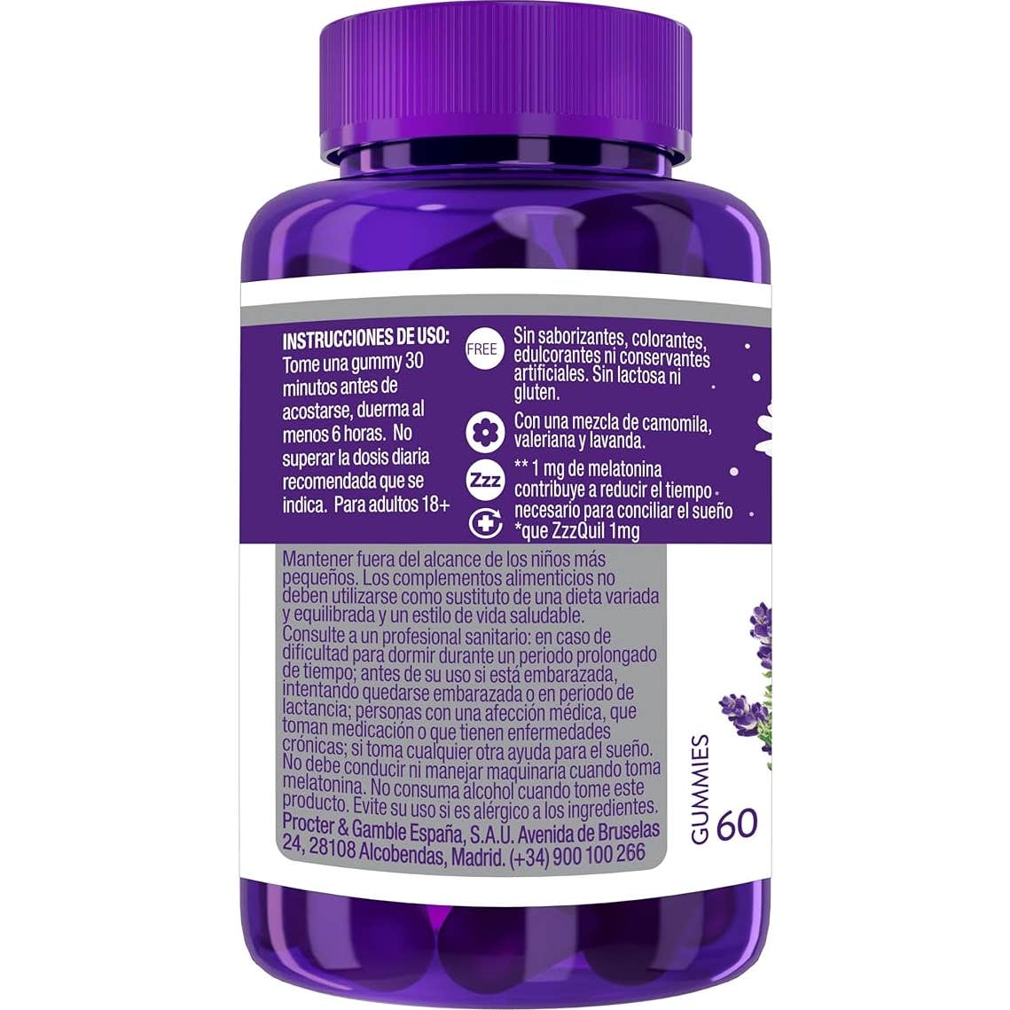 Zzzquil Natura™ Melatonina 60 gominolas es un complemento alimenticio en formato gominolas. Favorece el descanso y ayuda a dormir rápidamente gracias a su mezcla de ingredientes botánicos, que incluyen lavanda, manzanilla, bálsamo de limón y raíz de valeriana.