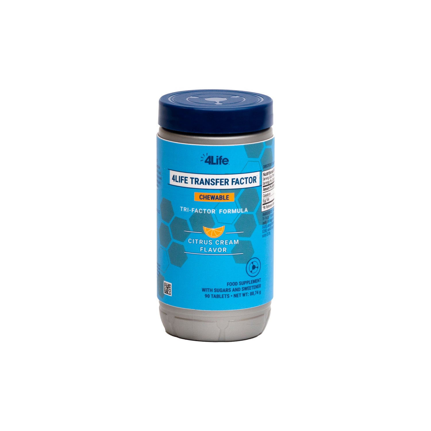4Life Transfer Factor Chewable Tri-Factor Formula 90comp è un integratore alimentare che include colostro bovino e tuorlo d'uovo in una forma masticabile e gustosa. Questo prodotto è progettato per facilitare il suo consumo, permettendo un'esperienza piacevole.