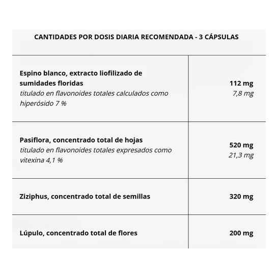Formulato con ingredienti naturali al 100%, come la passiflora e il luppolo, il concentrato di Ziziphus e l'estratto di Biancospino, che favoriscono il rilassamento.