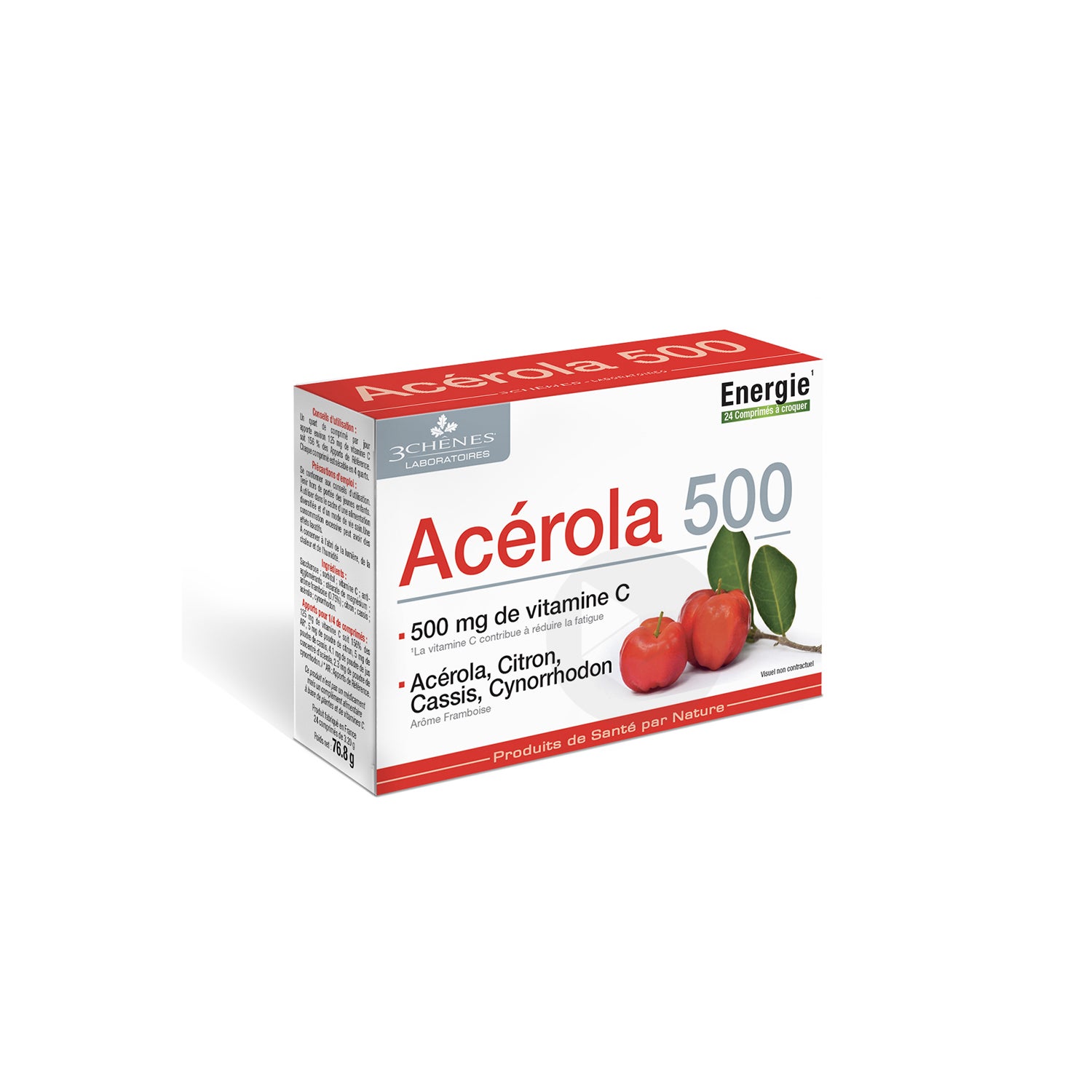 Acerola 500 è un integratore alimentare a base di vitamina C. La vitamina C è tradizionalmente utilizzata per aiutare a combattere il cansancio passeggero.