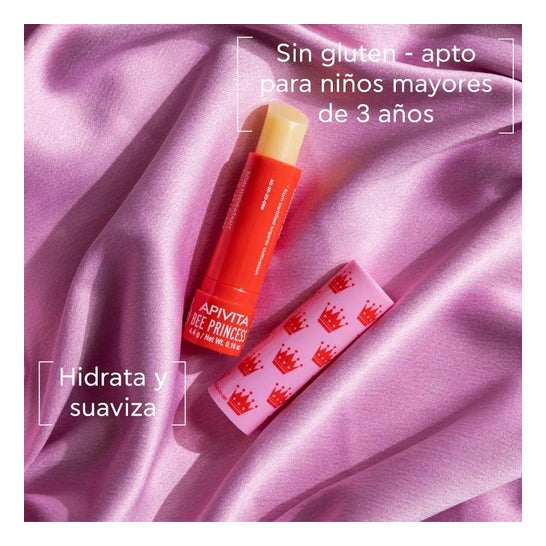 Apivita Bee Princess la cura delle labbra idrata le labbra dei bambini e li lascia morbidi senza inutile lucentezza.La sua formula contiene olio d'oliva, cera d'api, burro di karité, burro di cocco, olio di avocado, jojoba, miele ed esteri di albicocca, e protegge dalle aggressioni esterne con vitamina E e olio essenziale di geranio. Ha un sapore fruttato gradevole.
