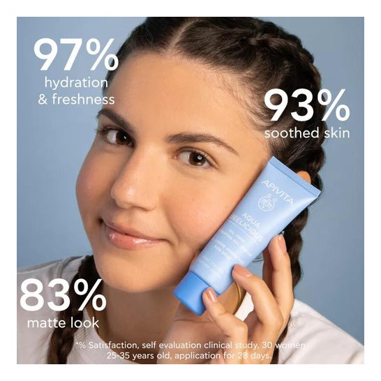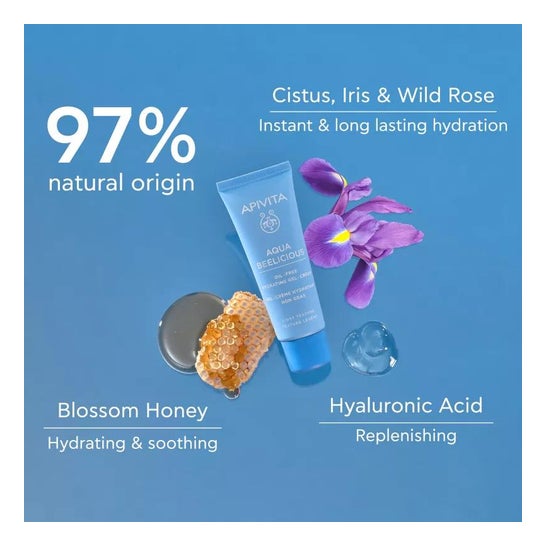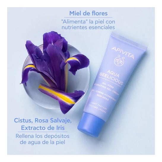 Apivita Oil-free moisturising cream-gel Light Texture 40ml riequilibra l'olio della pelle, fornendo una finitura opaca. Con una texture crema-gel, è ideale come base per il trucco. Con estratti di fiori di cisto, iris, rosa selvatica e miele, reintegra immediatamente le riserve di idratazione della pelle