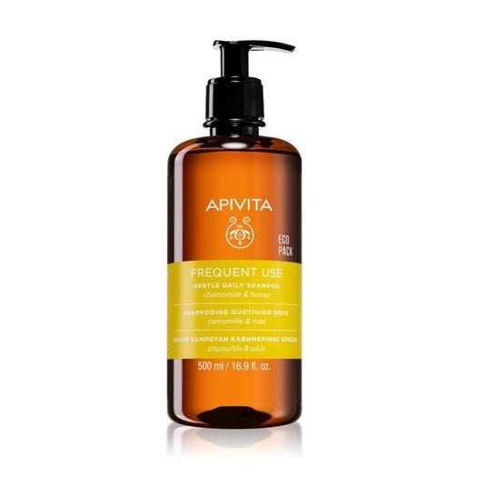 Apivita Frequent Use Shampoo 500ml è uno shampoo per uso quotidiano formulato con miele e camomilla che fornisce idratazione e deterge delicatamente il cuoio capelluto.