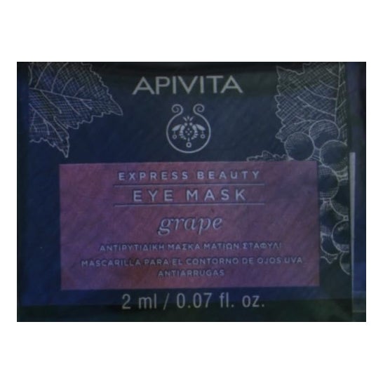 Apivita Express Beauty maschera antirughe occhio d'uva aiuta a rassodare la pelle intorno agli occhi. La combinazione di uva e vitamina A ed E aiuta a prevenire la comparsa delle rughe, rivitalizzando la pelle e donandole morbidezza;
