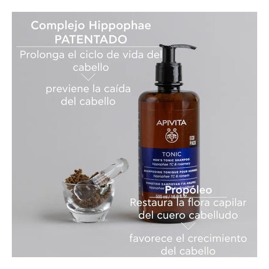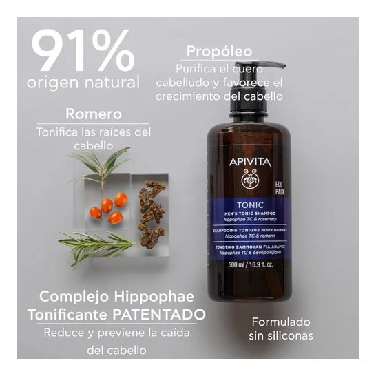 Apivita Tonic Anti-Hair Loss Shampoo for Men 500ml è uno shampoo che aiuta a rafforzare i capelli prevenendone la caduta, ne aumenta la densità e regola la secrezione sebacea.