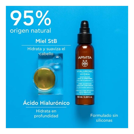 Apivita Daily Use Conditioner 100ml è un trattamento che contiene il 97% di ingredienti naturali: miele di timo, olio d'oliva*, proteine dell'avena*, camomilla*, estratti emollienti di salvia* e iperico*, APISHIELD HS, oli essenziali di lavanda* e geranio*, pantenolo, vitamina E, infusione di rosmarino*.