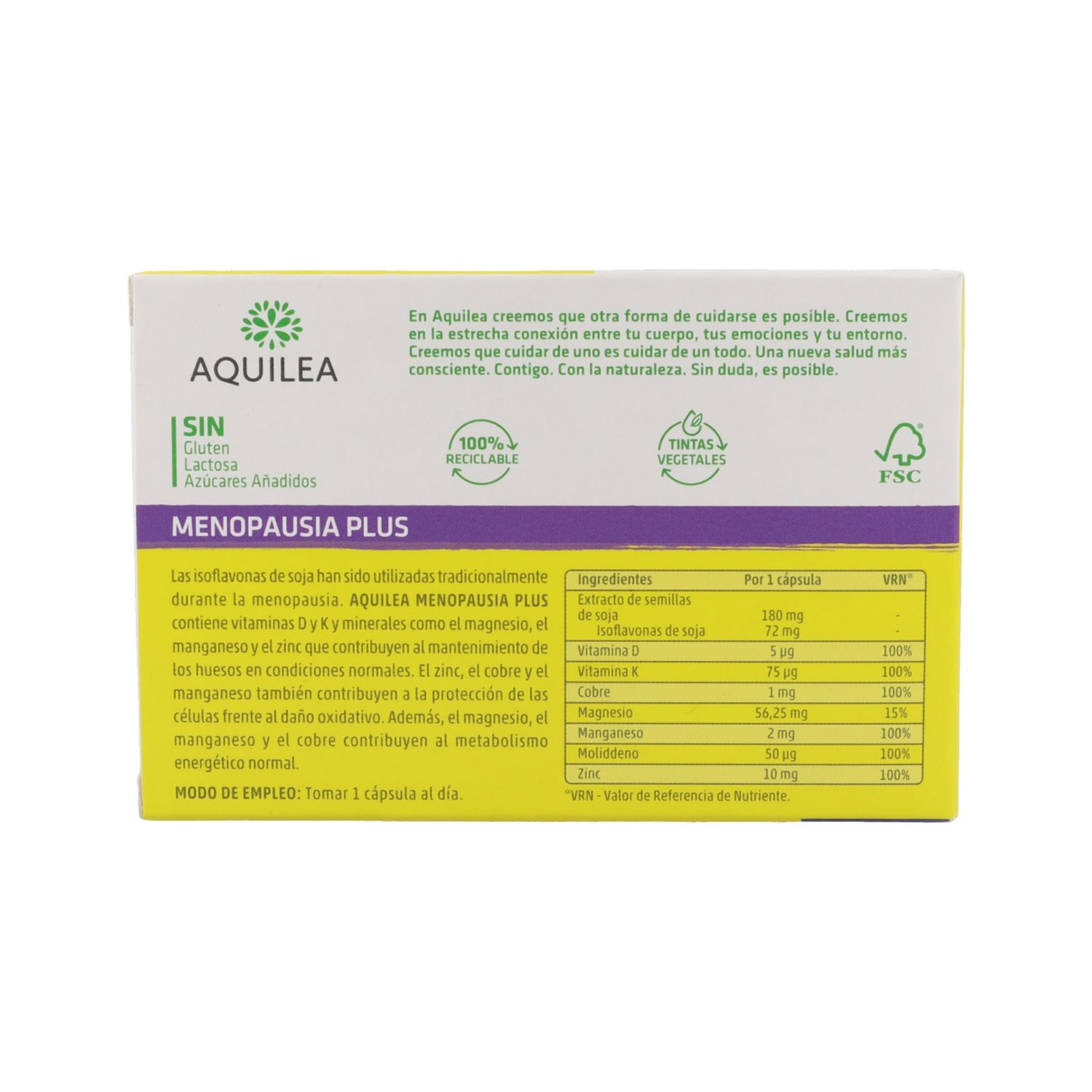 Aquilea Menopause Plus 30caps è un integratore alimentare per alleviare le vampate di calore causate dalla menopausa, nonché la sudorazione e altri sintomi che causano disagio. Una singola capsula fornisce la quantità giornaliera raccomandata di 72 mg di isoflavoni di soia.