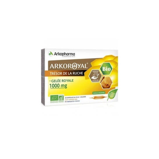 È un integratore alimentare biologico certificato sotto forma di fiala bevibile a base di pappa reale. Questo integratore alimentare contiene pappa reale, una sostanza secreta dalle api per nutrire esclusivamente una di loro che diventerà regina. Offre una durata di vita 40 volte superiore e un'elevata produttività. La pappa reale è naturale, senza coloranti né conservanti. Non vengono utilizzati pesticidi chimici. Aroma di miele e arancia. Agricoltura biologica certificata. Controllo FR-BIO-01.