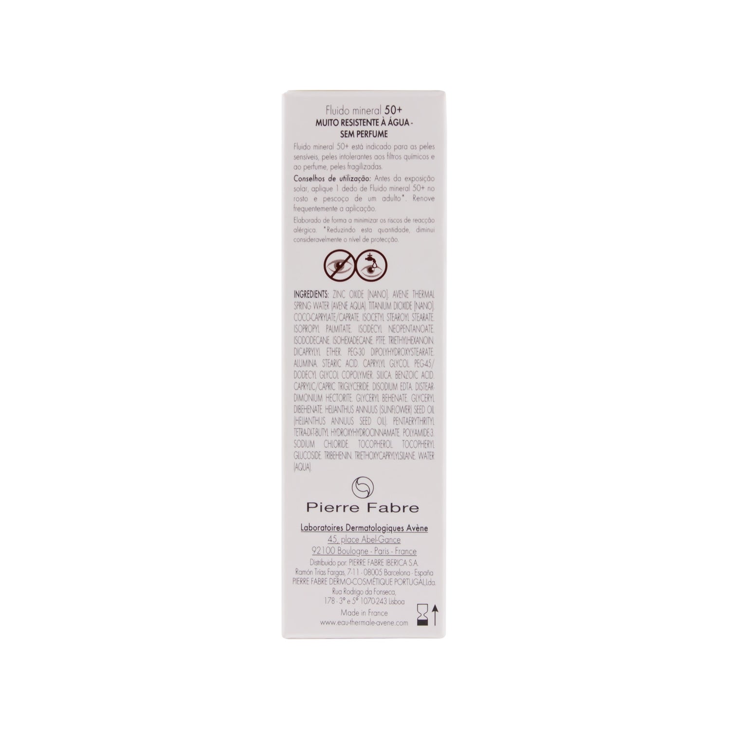 Ha una texture fluida e leggera, resistente all'acqua e che non lascia macchie bianche. Contiene anche Pre-tocoferile, per fornire protezione dai radicali liberi, e Acqua Termale Avène, dalle proprietà lenitive.