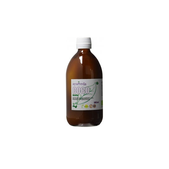 Olio di cocco puro del marchio Ayurveda. Può essere utilizzato per uso alimentare come un normale olio (sia a freddo che a caldo), per l'idratazione corporea applicandone una piccola quantità, distribuendolo uniformemente e lasciandolo asciugare. Lascia una sensazione grassa, quindi è necessario usarne pochissimo. Puoi anche usarlo per idratare i capelli, applicando una o due gocce sui capelli umidi asciugati con l'asciugamano, lasciando agire per qualche minuto e risciacquando abbondantemente. Un eccesso di olio può rendere i capelli grassi, quindi bisogna essere molto attenti.