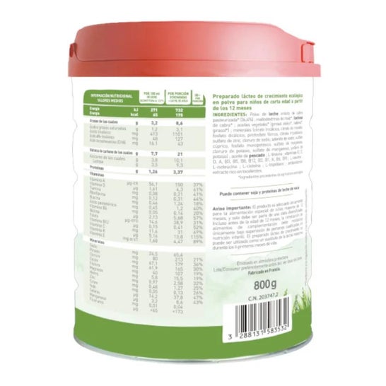 Latte di crescita ecologico in polvere per bambini da 1 a 3 anni. A base di latte di capra.