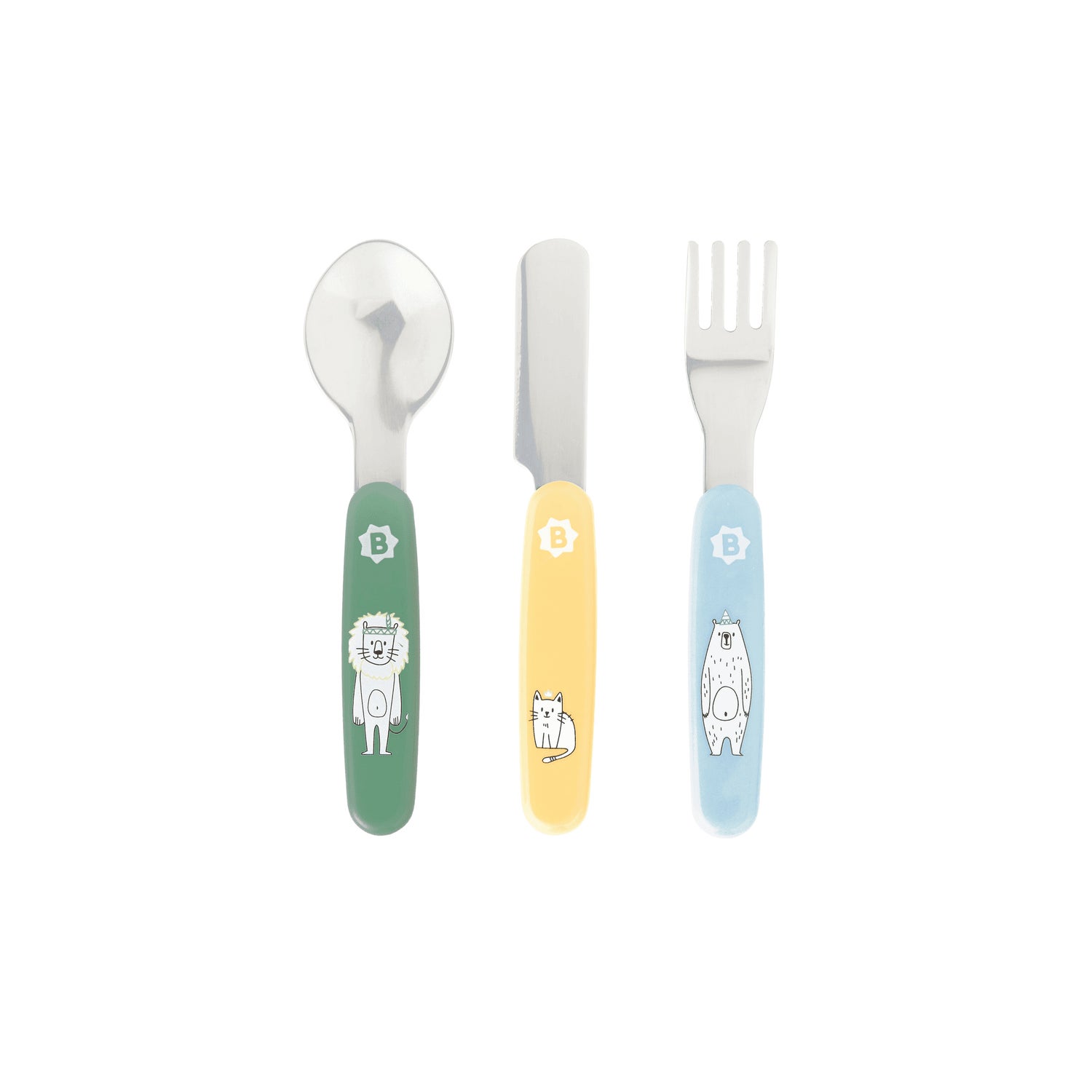 Badabulle Set Posate in Metallo 3uds è un insieme pratico e funzionale, ideale per quei bambini che stanno imparando a mangiare in modo indipendente. Questo set è composto da: