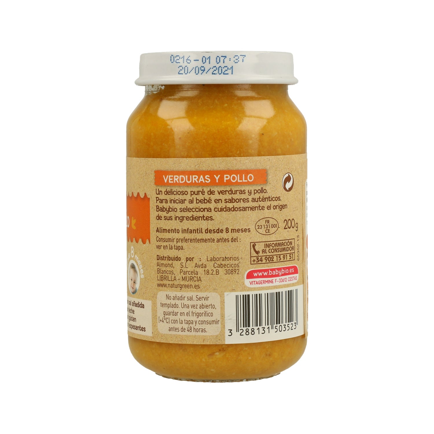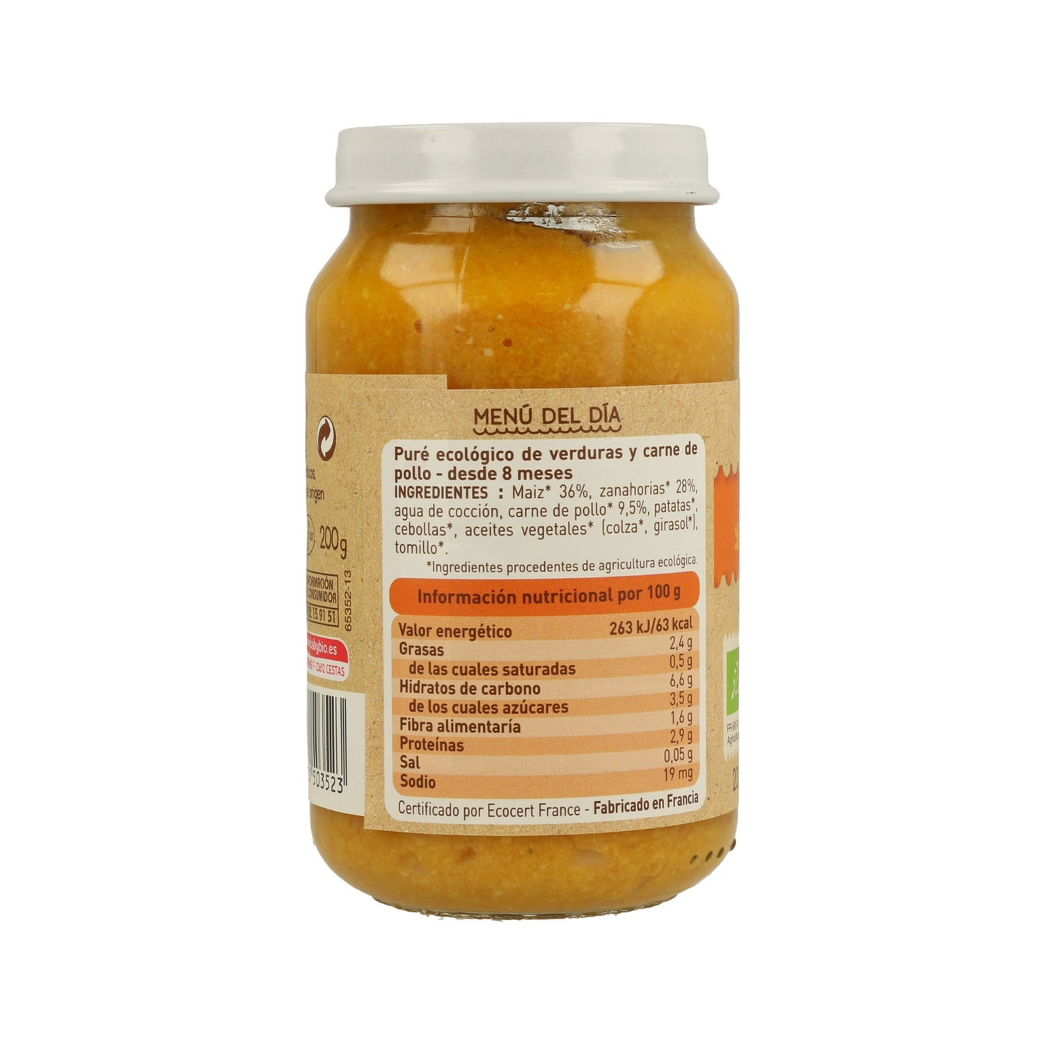 barattolo di verdure biologiche e pollo per bambini a partire da 4 mesi di vita.
