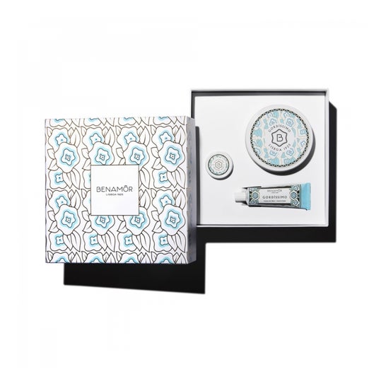 Set con tre prodotti di burro. Crema corpo per nutrire e idratare in profondità la pelle, restituendole un aspetto levigato e giovane. Crema per le mani per una migliore elasticità e aspetto, favorisce la lucentezza e il tono. Balsamo labbra per recuperare e riparare le labbra screpolate dal freddo o dai cambiamenti stagionali. Da utilizzare quotidianamente.