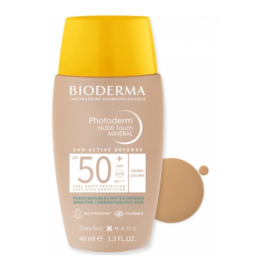 Bioderma Photoderm NUDE Touch Mineral SPF50+ Gold 40ml è una protezione solare che protegge la pelle dai danni causati dai raggi UV. La sua texture ultra leggera e setosa contiene agenti emollienti che penetrano negli strati esterni dell'epidermide e contribuiscono a mantenerla idratata.
