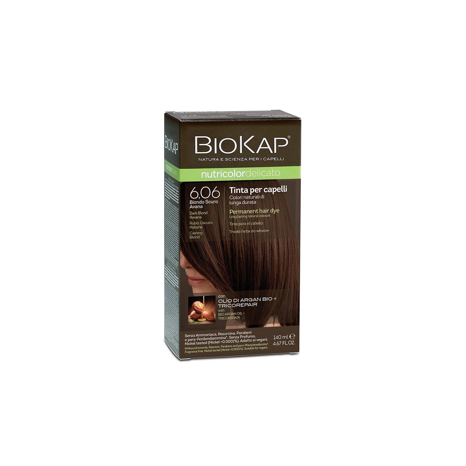 Biokap Tinte Delic 6.06 Biondo Scuro Habana 140ml fa parte della linea di tinte Biokap Nutricolor, che offre colori caldi, luminosi e naturali grazie alla sua formula speciale senza parafenilendiamina.