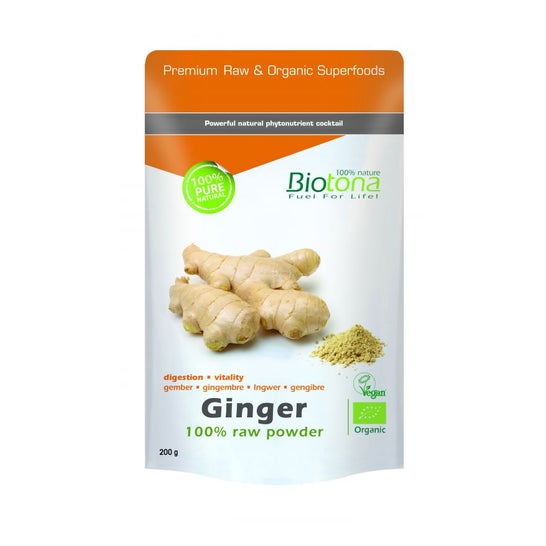 Polvere di radici di zenzero crudo essiccate a 45 gradi per conservare le sue proprietà nutrizionali. Prodotto proveniente da coltivazione biologica. Contribuisce al normale funzionamento del sistema immunitario e digestivo. Ideale per preparazioni dolci e salate, sia in bevande che solidi.