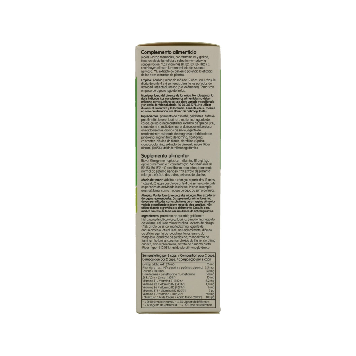 Integratore alimentare che ha un effetto benefico sulla memoria e sulla concentrazione, inoltre contribuisce al buon funzionamento del sistema nervoso. Questo prodotto contiene estratto di pepe che potenzia l'efficacia degli altri estratti di piante. Il Biover Ginkgo memoplex si utilizza per sostenere il rendimento, sia al lavoro che a casa e a scuola. Presentazione: Capsule.