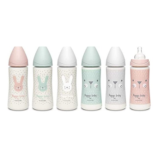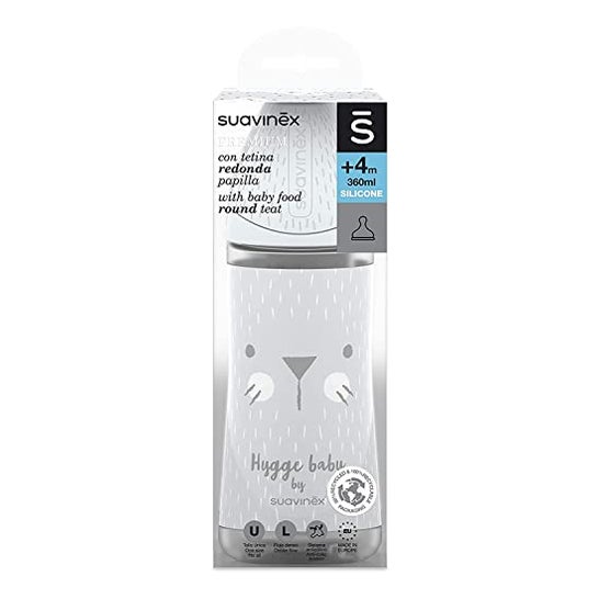 Il biberon in silicone Suavinex® Premium è dotato di un capezzolo largo rotondo a 3 posizioni che consente al bambino di succhiare senza problemi.