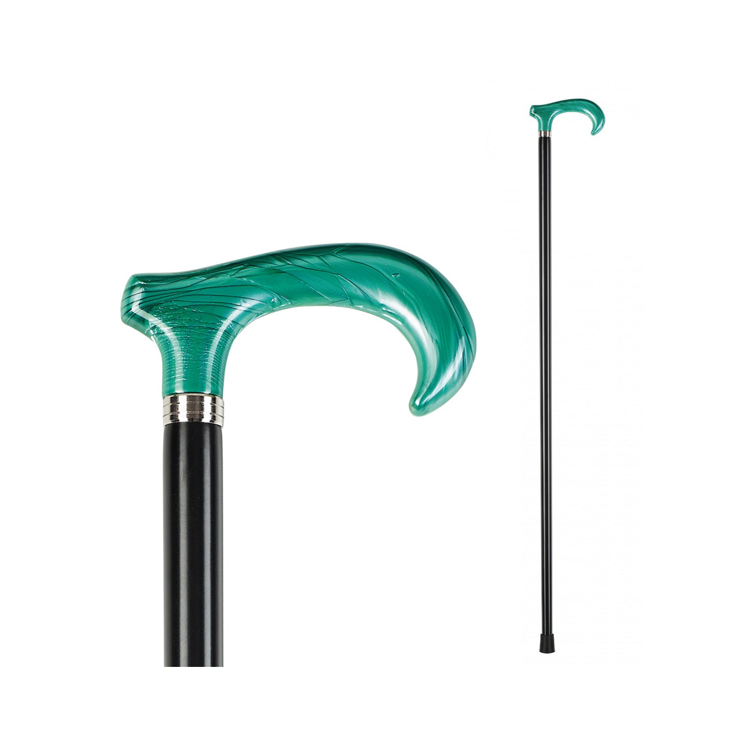 Bastone con palo di alluminio che aiuta le persone con mobilità ridotta. Presenta un formato regolabile con impugnatura in metacrilato decorato.
