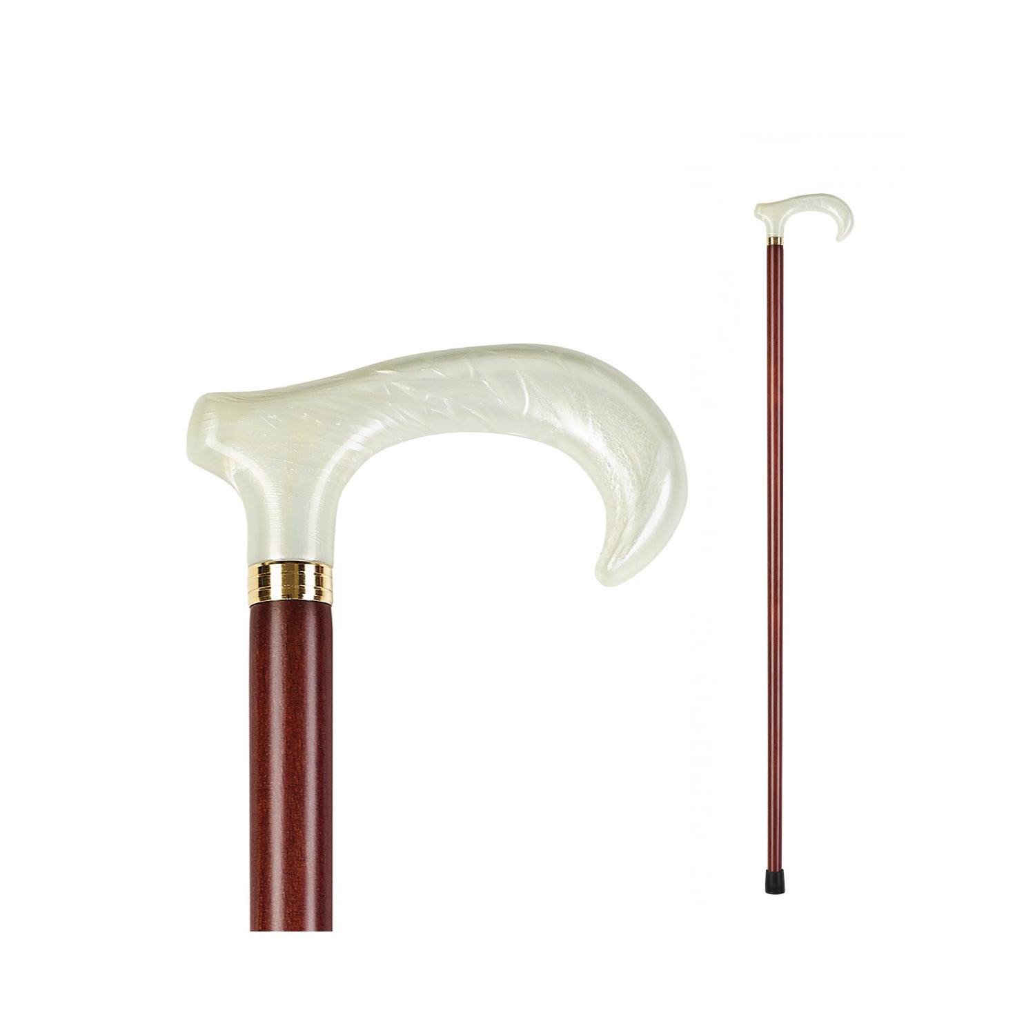 Stampella con palo in alluminio che aiuta le persone con mobilità ridotta. Presenta un formato regolabile con un'impugnatura in metacrilato decorato.
