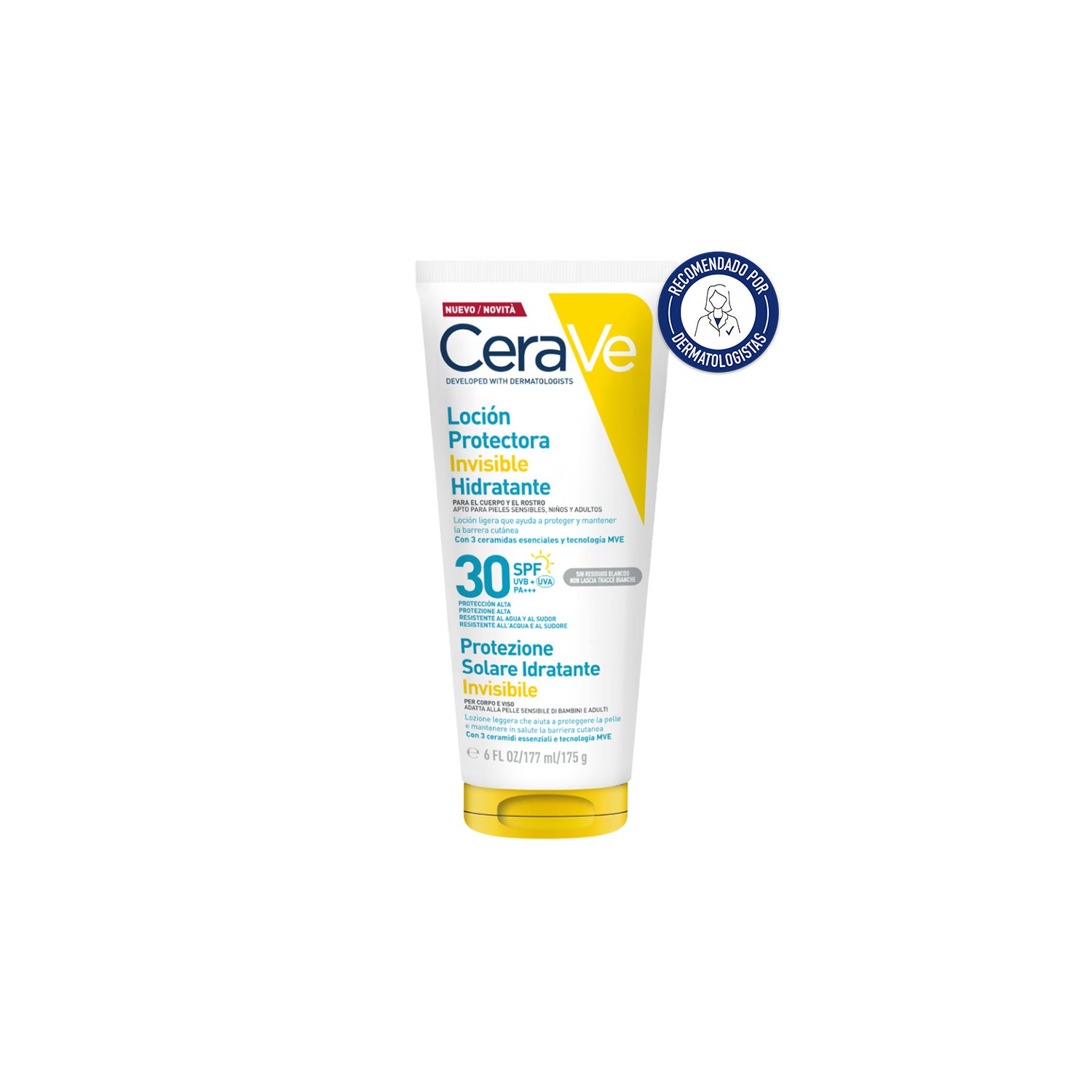 CeraVe Lozione Protettiva Invisibile Idratante SPF 30 offre alta protezione contro i raggi UVB + UVA, in una formula leggera e idratante per un solare che vorrai usare ogni giorno.